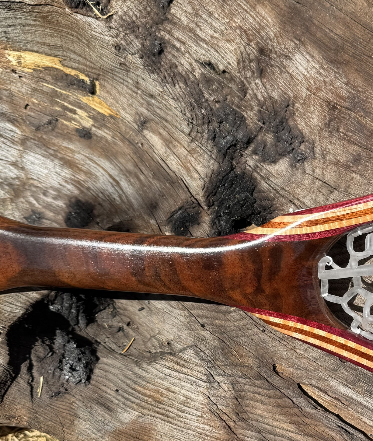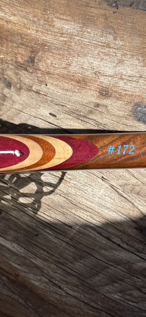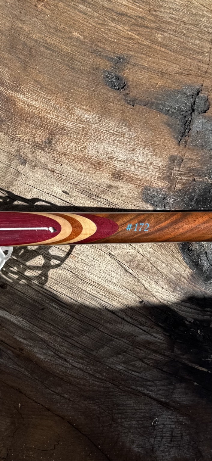 • The hoop is alternating Purple Heart, Curly Maple and Sapele.