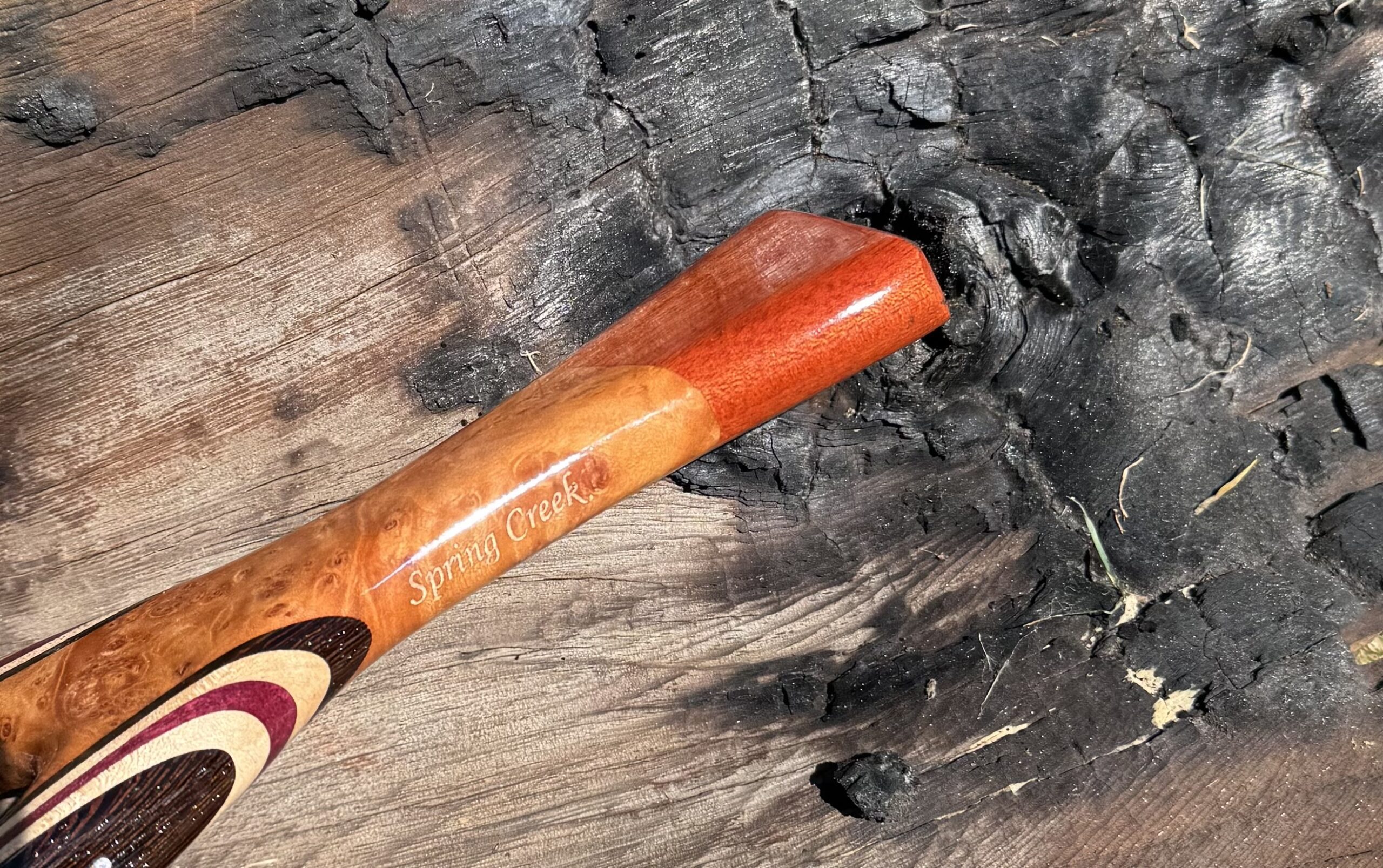 Maple Burl – Blood Wood handle that is 7-1/2” long